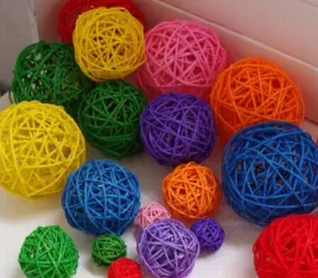 ①構成:藤球是用9--11根細藤單曾藤條編制而成的黃色空心圓球。