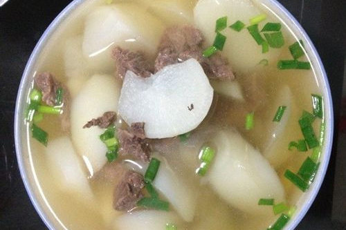 山楂白蘿卜煲 原料:羊肉500克,白蘿卜300克,山楂20克,薑、鹽、香菜葉各適量。 制作:先將羊肉洗凈、切塊,放入沸水中汆燙一下、撈出、去凈血水;再將白蘿卜去皮、洗凈、切塊備用;再將薑洗凈、切片備用,山楂洗凈;在沙鍋裡放入羊肉、白蘿卜、山楂、薑片,加入清水正好淹沒材料),用大火煮沸後,改小火煮約1小時;加入鹽、香菜葉調味即可。 肥牛鯽魚金針湯 原料:鯽魚1條,肥牛片150克,金針菇250克,油菜、鹽、芝麻醬各適量。 制作:先將鯽魚去鱗、去內臟、洗凈,放入油鍋裡略煎,然後加水熬至湯汁乳白;金針菇去除根部、洗凈,把適量的金針菇卷入一片肥牛片中;油菜