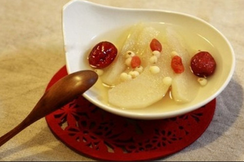 祛痰香蕉冰糖水材料:香蕉3隻,冰糖適量。做法:香蕉去皮切塊,加入冰糖。加兩碗水煲成甜湯。功效:適合因氣候幹燥引發的支氣管炎。止喘無花果甜湯材料:無花果3個、紅糖適量。材料:紅糖適量,無花果2至4粒。做法:無花果洗凈對半切開,兩碗水煲湯。紅糖後下,趁熱溫服。功效:由受熱引起的復咳、喘呃。柚子核桃湯材料:核桃仁10克、柚子核5克、冬瓜皮2克。做法:核桃仁搗爛加柚子核、冬瓜皮,10碗水煮湯,去渣留湯代茶飲。功效:調節內分泌,清熱去燥、潤肺化痰。清熱川貝飲材料:川貝母15克、豆腐2塊、冰糖適量。做法:川貝母研碎,連同冰糖放到豆腐上,