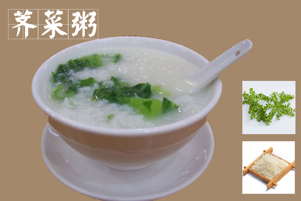 薺菜粥將米加水煮沸後,加入薺菜,煮沸後轉文火熬煮成粥。可每日食1~2碗。此粥有涼血止血、清肝明目的作用,適合高血壓、熱淋、小便不利、尿濁、肝熱目赤以及婦女月經過多、崩漏者食用。胡蘿卜粥將白米與胡蘿卜放入水中煮成粥,早、晚食用。此粥有利於春季消除煩躁和降低血壓,還有助於麻疹患者解表透疹。梅花粥將米煮成粥後,再加入適量白梅花,然後繼續煮沸2~3分鐘即成。可每餐食一碗,連續食用3~5天。此粥可疏肝理氣,刺激食欲,適合無食欲者食用,即使是身體